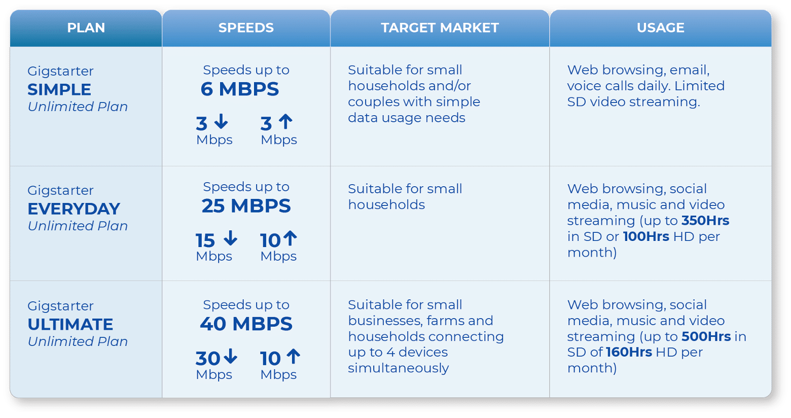 In conjunction with the introduction of the new modem Kacific has also introduced new plans for its popular Gigstarter service. These include: