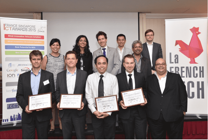 Kacific CEO, Christian Patouraux (left), amongst the winners at the France Singapore ICT Awards 2015