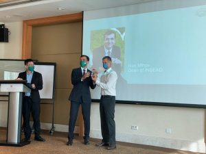 Dean Ilian Mihov and Tan Eng Hwa TIEMBA’16Jan present BAFG Award to Christian Patouraux MBA’03D at INSEAD Alumni Association Singapore’s Annual General Meeting on 26 February, 2021