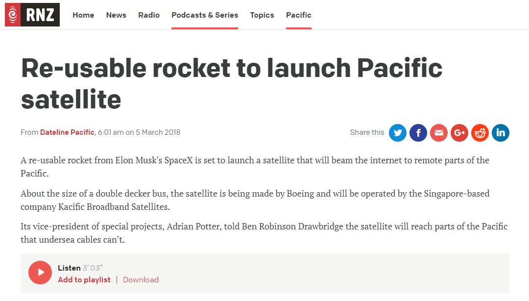 Potter explained to Radio New Zealand, the country’s leading national radio, how Kacific-1 will reach parts of the Pacific that undersea cables can’t.