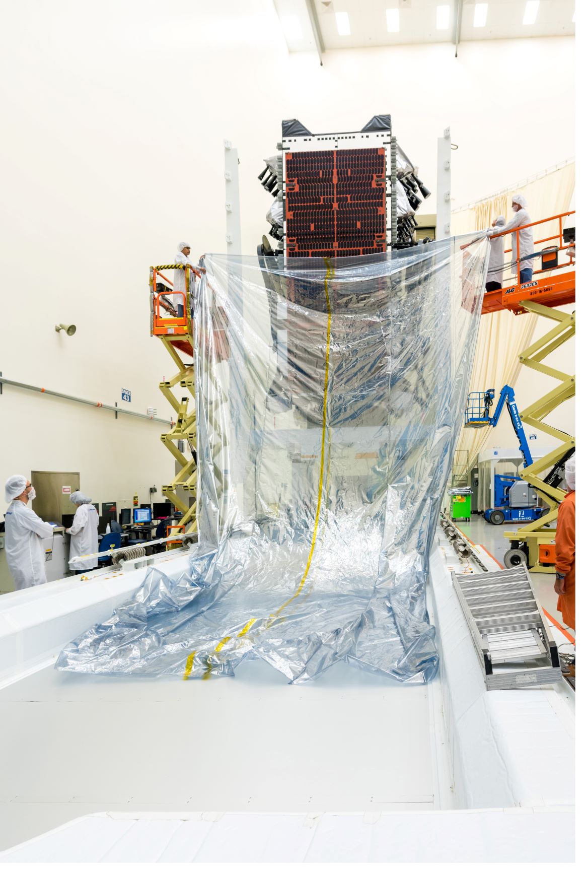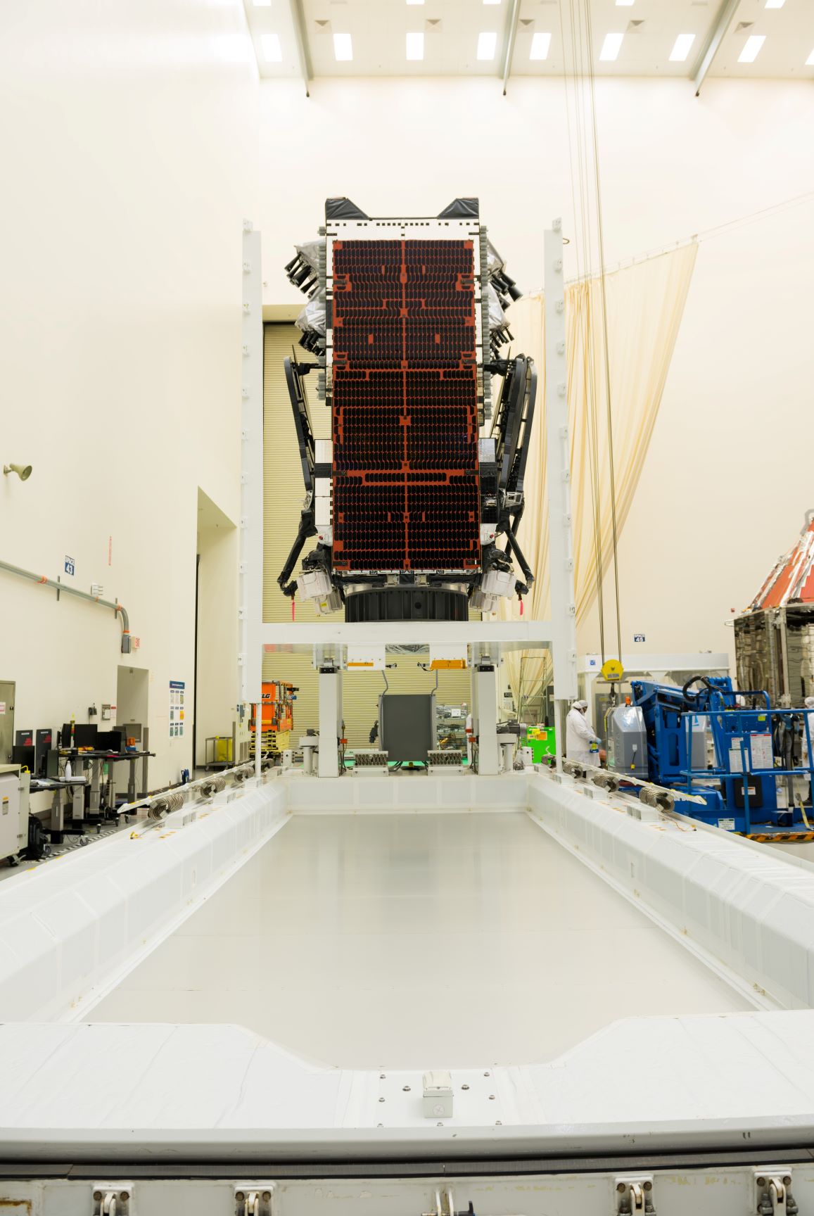 Here are some images from Boeing showing the preparation of the satellite for transport.